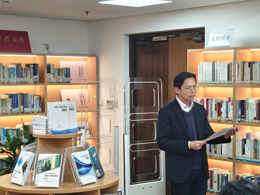 创新发展学院副院长汪雄剑在致辞中表示,《中国人力资本报告》是学院与研究中心17年持续耕耘的重要成果,既服务国家重大战略,也推动了我国人力资本研究的国际对话。当前我国正处在人口结构深刻变化与高质量发展关键阶段,报告所提供的数据基石与分析框架,对于精准把握人口红利转变、优化教育与就业政策、应对老龄化挑战具有不可替代的价值。此次入藏“中财大学者文库”,不仅是对成果的认可,更意味着其将在图书馆这一知识枢纽中实现更长久的保存与更广泛的传播,最大化学术与公共价值。